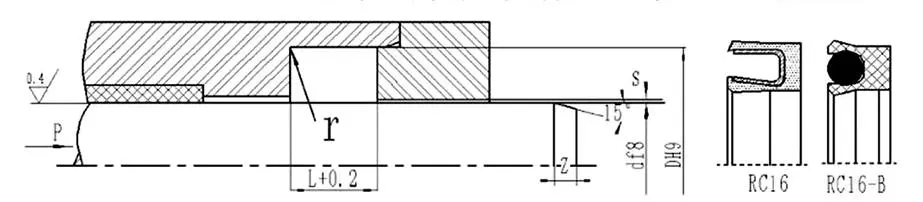 Den RC16 fjæraktiverte tetningen er sammensatt av en rustfri stålfjær og høyytelsesplast. Den rustfrie stålfjæren kan enten være en V-formet eller O-formet fjær. Når du bruker RC16-B, må passende elastomermateriale velges.