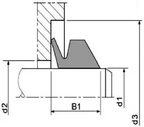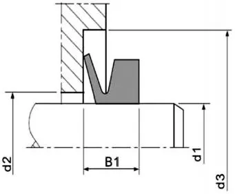 Skjematisk diagram av en V-formet vanntetning